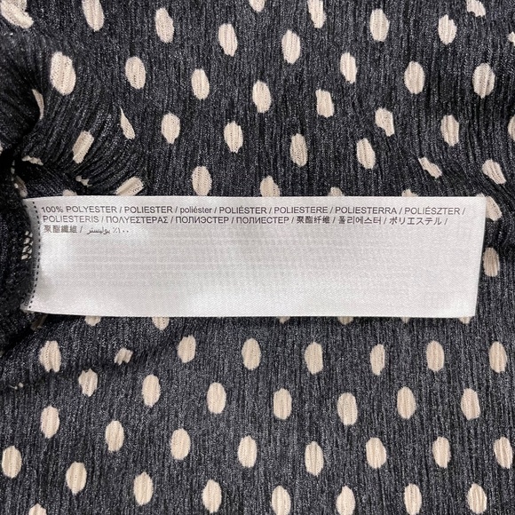 MANGO MNG Polka Dot Dress Size 6 / M V-Neck Attached Belt Sheer Crinkle Fabric