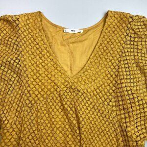 MANGO Mustard Yellow Lace Drop-Waist Dress Sz XS