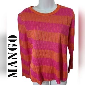 MANGO Oblicuo Rib-Knit Sweater Orange & Pink Size Large