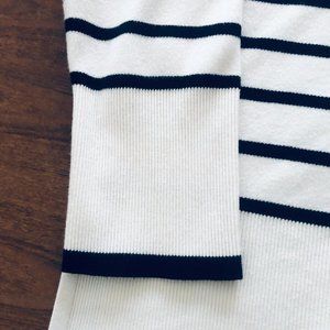 Fine knit fabric. Striped print. High collar. Long sleeve.