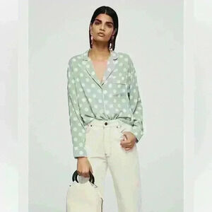MANGO POLKA DOT GREEN BUTTON DOWN BLOUSE SMALL (2)