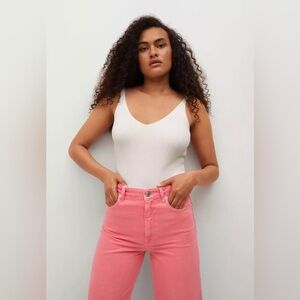 These Mango jeans feature a trendy pink hue and a stylish flare and wide-leg design. Crafted from soft denim, they offer a comfortable fit with a high-waisted silhouette. Perfect for adding a pop of color to your casual wardrobe.