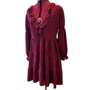 MANGO Red - Robe Lala - dress - long sleves - V neck with ruffle - Size 10