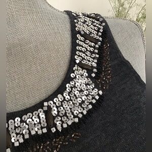 Fine knit dress Very soft Dark grey Beautiful embellishments around neckline Flares from waist