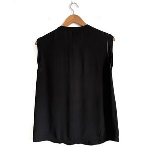Mango semi sheer, lightweight, popover sleeveless blouse with two front pockets and snap button closure.