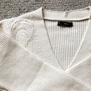 Size: S. Color: Cream. V- neck, long sleeve, button down. 58% Acrylic, 42% Polyester.