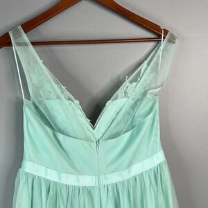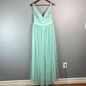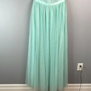 MANIJU NWT Prom Dress Mint Green Lace Appliqués Over Tulle Floor Length Gown L