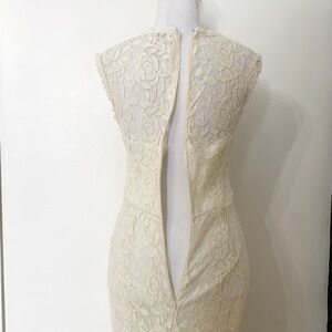 MANIJU OFF WHITE LACE SWEETHEART SLEEVELESS EVENING PROM FORMAL GOWN DRESS, an of white lace sleeveless sweetheart neckline fitted siren prom formal evening gown / dress - concealed zipper closure in the back lined - stretchy yet fitted and sleek / mermaidcore style - perfect for a red carpet, galas, ceremonies, prom - bridal style with a bohemian touch for a wedding.