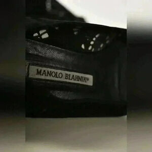 Experience the epitome of luxury with MANOLO BLAHNIK Black Lace Suede Cutout Floral Round Toe Flats. Handcrafted in Italy, these size 37.5EU/7.5US flats feature intricate mesh and lace cutouts, creating a delicate floral pattern.