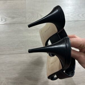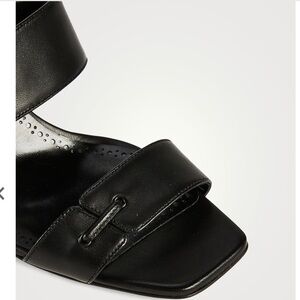 Exuding elegance and sophistication, these Italian-crafted leather sandals feature a timeless strappy design. The open-toe mules boast two broad straps across the toe and instep, lace strap detail, and a stiletto mid heel for the perfect balance of chic and comfort.