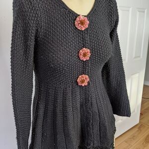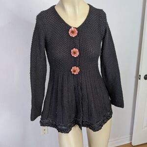 MANOUSH Anthropologie Black Wool Blend Soft Knit sequin Flower Sweater cardigan