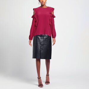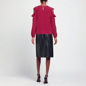 Made in Italy, 100% Silk. Solid color, Ruffles, Round collar, Long sleeves, New with tags.