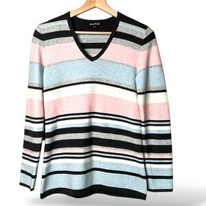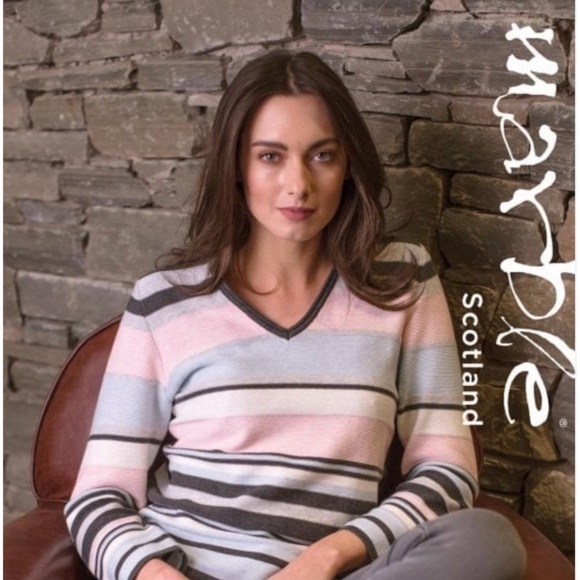 MARBLE Scotland 100% Cotton Lightweight Stripe Vee Neck Sweater Sz XL