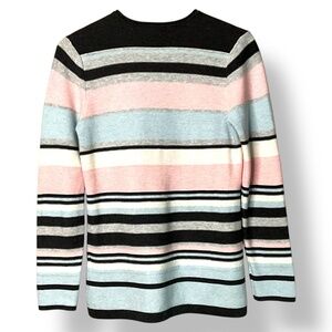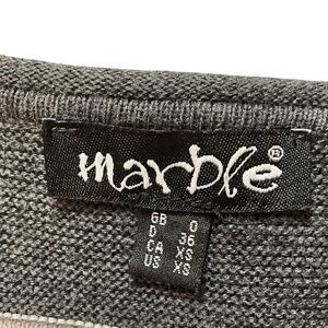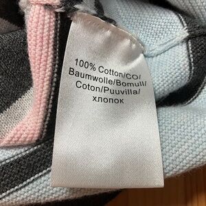 In very good pre owned condition showing no outward signs of wear or wash wear. Oversized. Blocked stripe V neck pullover sweater from Marble clothing. Designed in a shaped fit in 100% Cotton, this lightweight textured cotton sweater features a block stripe design in grey, pink, light blue off white colours. Photos are important so please check all for condition, detail and measurements.
