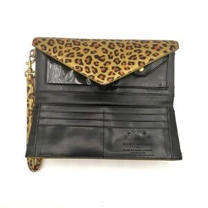 Unleash your wild side with the Marc by Marc Jacobs Animal Prints Clutch. This brown and gold wristlet is adorned with a magnetic closure for security and ease of use. Inside, you'll find a well-organized space featuring card slots, a cash holder, and a coin pocket, ensuring functionality meets style.