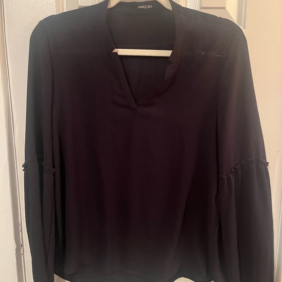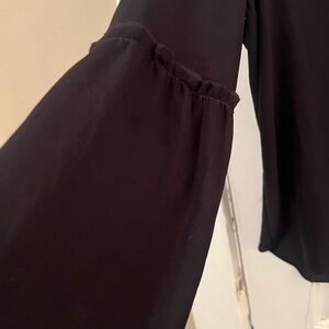 Chic black blouse with unique sleeve design. Ideal for versatile styling. GUC.