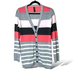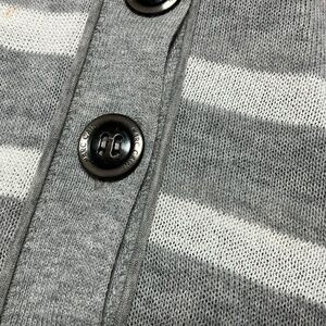 MARC CAIN Linen Button Front Cardigan Stripe Long Sleeve Vee Neck US Sz S