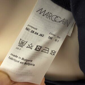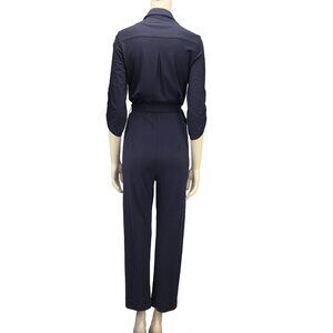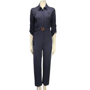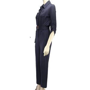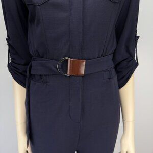 MARC CAIN Roll-Tab Sleeves Button down Belted Stretch Navy Blue Jumpsuit Sz S