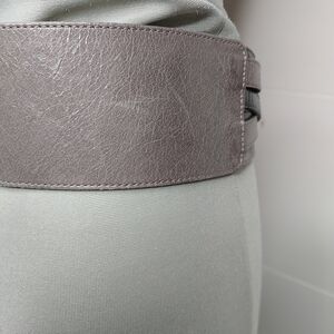 Gorgeous and unique grey and black leather triple strap belt by Marc Cain. Made in Germany. I'm unsure of the exact size but have listed as 35" (loosest hole). Please check measurements! I know there is a 4 stamped on the inside but I can't confirm for sure that is the size.