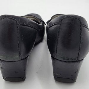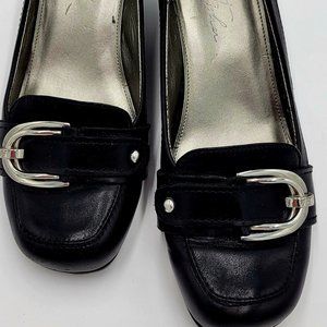 MARC FISHER Black Leather Wedge Shoes Silver Buckle Square Heel SZ 8.5