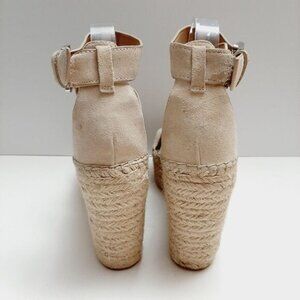 MARC FISHER \ Perforated Suede Open Toe Rope Platform Wedge Shoe Cream Beige 9