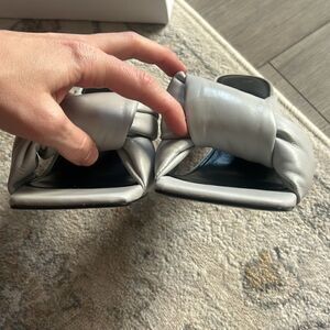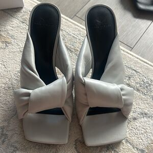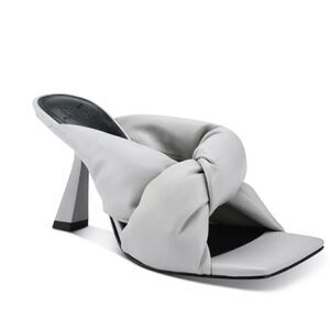 MARC FISHER Womens Gray Dellian Square Toe Slip On Leather Heeled Sandal