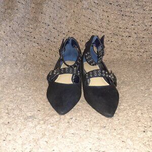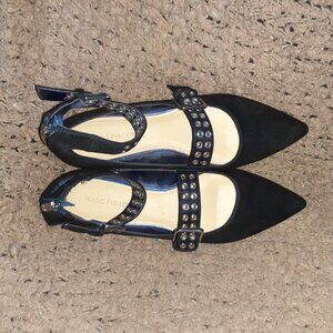 MARC FISHER-Alen-Two Strap Grommet Shimmery Blue Nubuck-Pointed Toe-Sz 8.5-NM