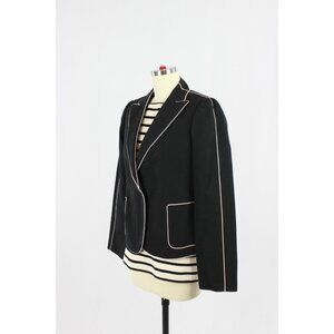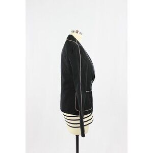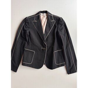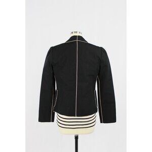 MARC JACOBS Black Cotton Faille Cream Piped Trim Blazer Jacket, Size 00