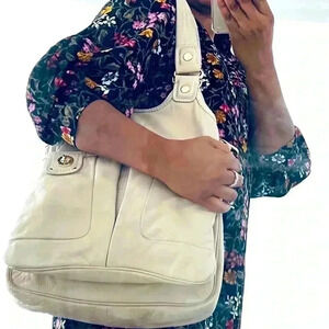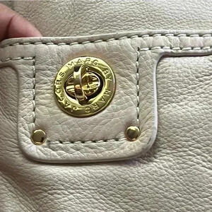 MARC JACOBS CREAM OFF WHITE PEBBLE LEATHER SHOULDER GOLD HARDWARE BAG