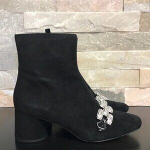 MARC JACOBS Embellished Chain Suede Block Heel Booties