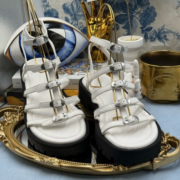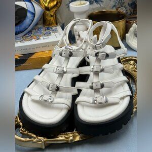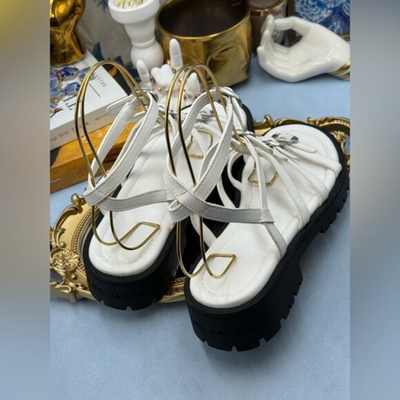 🆕 MARC JACOBS 🧿 NWOB The Kiki Gladiator Lug Sandals, White Leather - Sz 9M