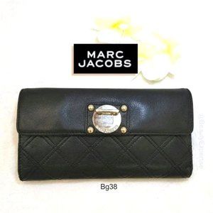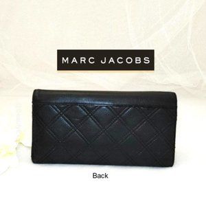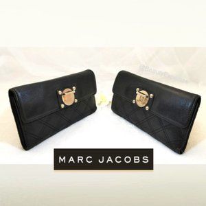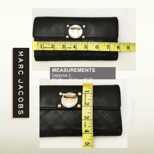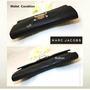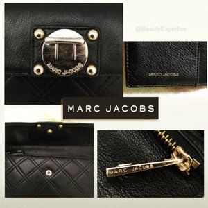 MARC JACOBS Wallet Black Genuine Leather Quilted Trifold Cards Bills Slots Bill…