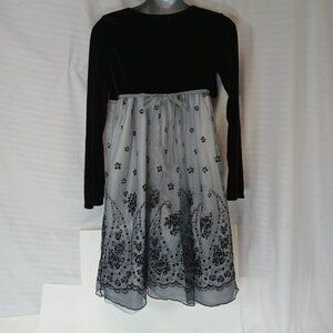 MARC & MADDIE Size 16 Black Fully-Lined Floral Accents Long Sleeve Dress