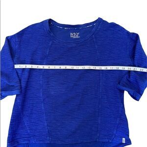 MARC NEW YORK Cobalt Blue Waffle Scoop Neck 3/4 Sleeve Cropped Top M
