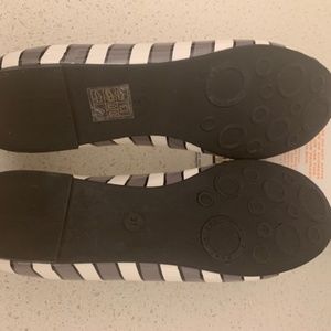 Excellent, like new - MARC by MARC JACOBS Sad Face Cartoon Girl grey & white Striped Patent Leather Shoes