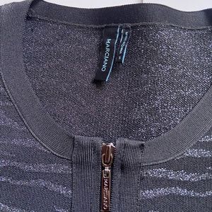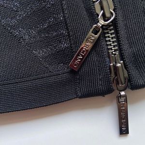 MARCIANO Black Silver Tiger Zebra Liquid Knit Sweater Moto Jacket Mob Chic