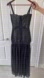 Bandage upper with pieced sequin embellishment. Contrast chiffon skirt with dual slit detail on front and back.