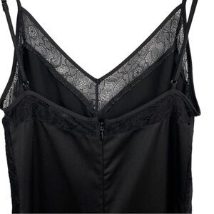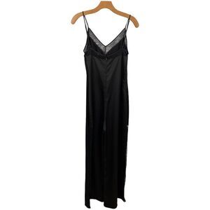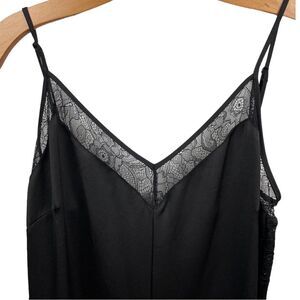 MARCIANO by Guess Black Lace Trim Wide Leg Tuxedo Stripe Cami Jumpsuit Size M