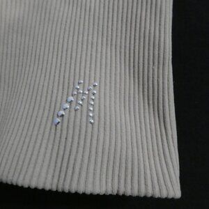 The smooth upper portion provides a sleek silhouette, complemented by a subtle decorative "M" element near the hem