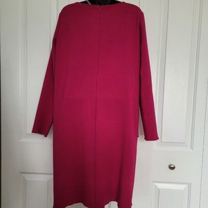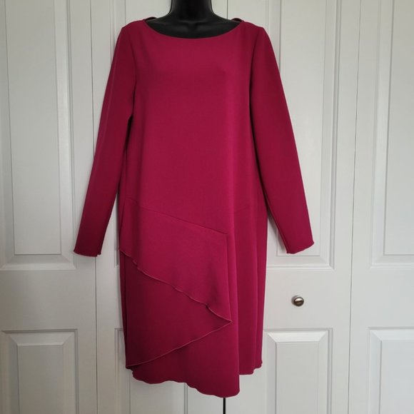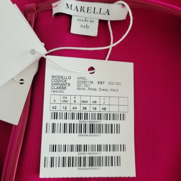 Comfortable and elegant MARELLA dress; boat neck and pleated pattern on lower front, hide-out zip at back.