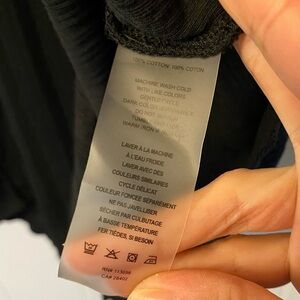 MARGARET O’Leary Ribbed Long Sleeve Cotton Tee T-shirt Top Black Scoop Hem