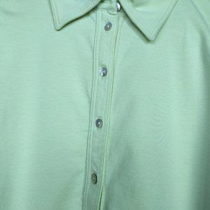 Never worn. this blouse is beautiful and stretchy. made with 92% cotton and 8% elastane. This one I have never washed though I have many Margitte brand blouses and they stay true to their original color, they don't lose shape, great design and fabric, durable and well constructed