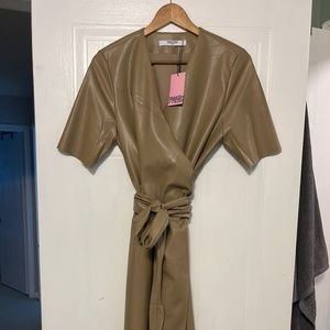 MARGOT VEGAN LEATHER MIDI DRESS IN TAUPE