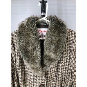 MARIA DIONISIOU Vintage Wool Blend Brown Houndstooth Pattern Faux Fur Collar Long Winter Coat Sz 1X (US 14X-16X)