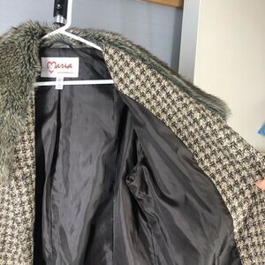MARIA DIONISIOU Vintage Wool Blend Houndstooth Faux Fur Coat Sz 1X (US 14X -16X)