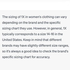 Online charts states 1X is equivalent to US 14X-16X. ***Check Measurements***