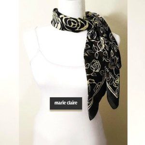 Elegant MARIE CLAIRE 100% Pure Silk Large Square Scarf Printed Marie Claire with Floral Print in classy multi-color Taupe Grey Light-Yellow Brown with Black Border.