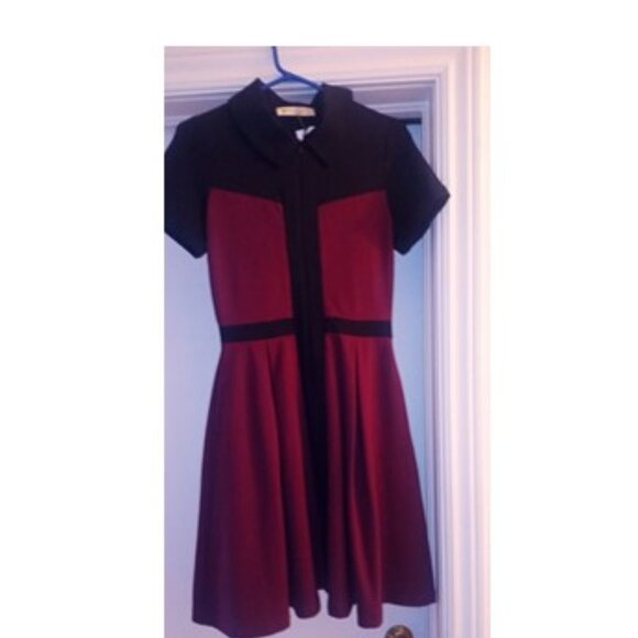 MARIGOLD designer dress. New with label. Burgundy plum color. Rayonne, nylon and spandx. Zipper in front, pocket on each side. Beautiful fit.