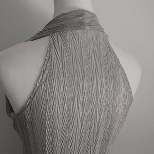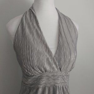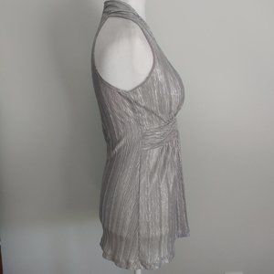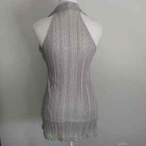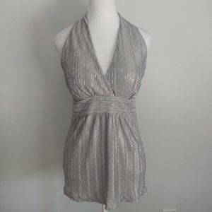 MARILYN MONROE Style Silver Halter Top Blouse Crushed Pleats Dressy Casual MED