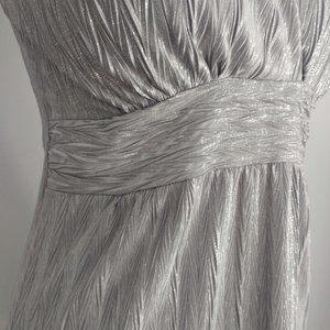 Crushed pleated silver fabric add texture to the look